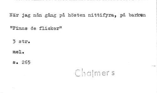 //// När jag nån gång på hösten nittifyrat på barken "Finns de flickor" //// 3 str. mei» //// s. 265 //// Lnatrn er s ////
