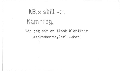 //// KB:s skitt.-tr. //// Namnreg. //// När jag ser en flock blondiner //// Bleckstadius,Carl Johan ////