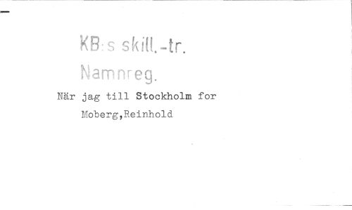 //// KB:s skiU. //// Namnreq, //// När jag till Stockholm for Moberg,Reinhold ////