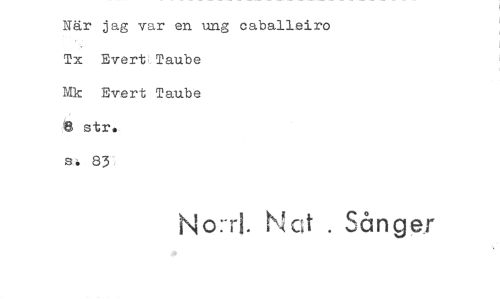 //// När jag var en ung caballeiro Tx EvertTaube //// Mk Evert Taube 8 str. //// 83 //// No:" K!,,t,Å . ////