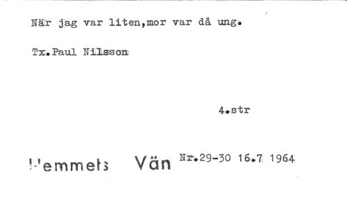 //// När jag var liten mor var då ung. T x . Paul Nilsson_ //// 4.str //// emmets Van Nr.29-30 16.7 1964 //// !) ////