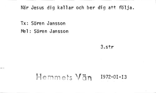 //// När Jesus dig kallar och ber dig att följa. //// Tx: Sören Jansson Mel : Sören Jansson //// 3.str //// Hemmets 'Van 1972-01-13 ////