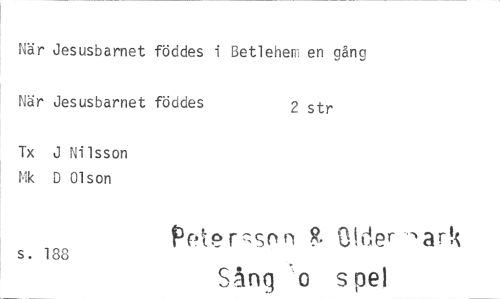//// När Jesusbarnet föddes i BetleherE en gång //// När Jesusbarnet föddes 2 str //// Tx J Nilsson Pik D Olson Petersnn //// s. 188 Sång o s pel ////