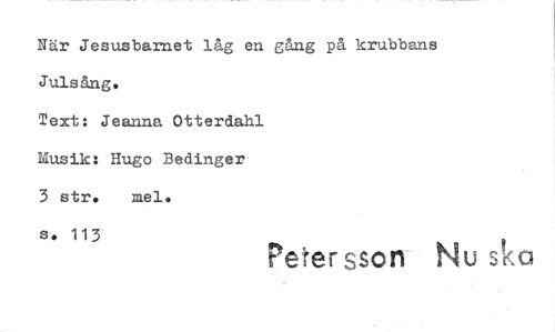 //// Nät Jesusbarnet låg en gång på krubbans Julsång. //// Text: Jeanna Otterdähl //// Musik: Hugo Bedinger //// 3 str. me).* //// s. 113 Petersson Nu s ////