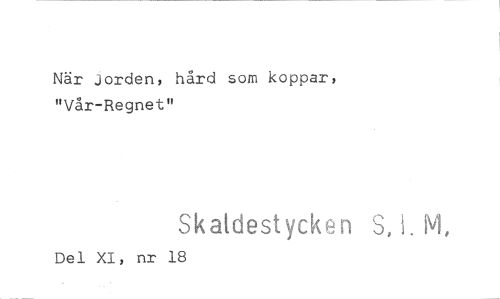 //// När jorden, hård som koppar, "Vår-Regnet" //// Skaldestycks n 3, M, //// Del XI, nr 18 ////