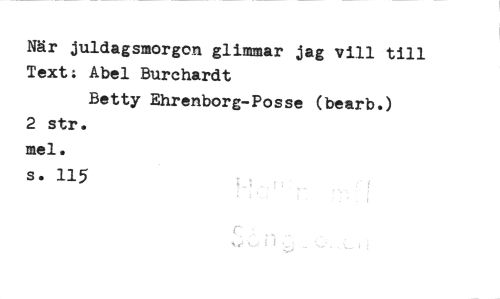 //// När juldagsmorgon glimmar jag vill till Text; Abel Burchardt //// Betty Ehrenborg-Posse (bearb.) //// 2 str. //// mel. //// s. 115 ////