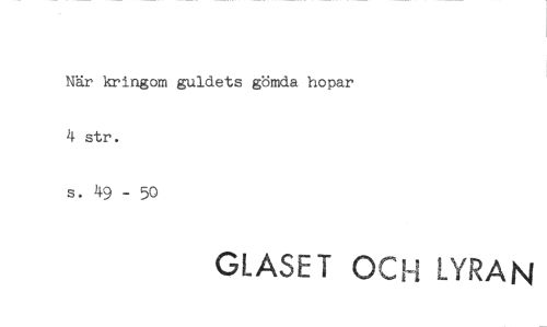 //// När kringom guldets gömda hopar 4 str. //// s. 49 - 50 //// GLASET OCH LYRAN ////