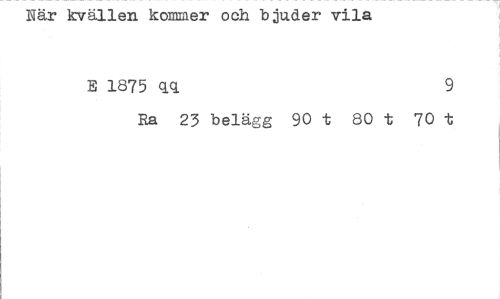 //// När kvällen kommer och bjuder vila //// E 1875 gg 9 //// Ra 23 belägg 90 t 80 t 70 t ////