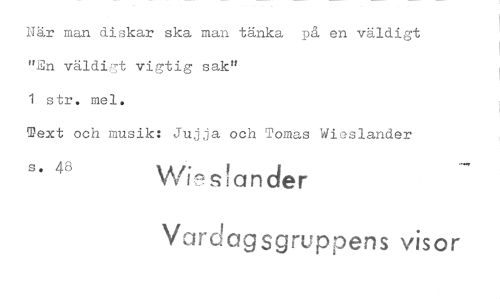 //// När man diskar ska man tänka på en väldigt "En väldig7t vigtig sak" //// 1 str. mel. //// Text och musik: Jujja och Tomas Wieslander //// s. 48 WiPsiander //// Vardagsgruppens visor ////