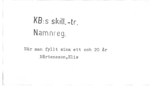 //// KB:s //// Namnreg. //// När man fyllt sina ett och 20 år Mårtensson,Elis ////