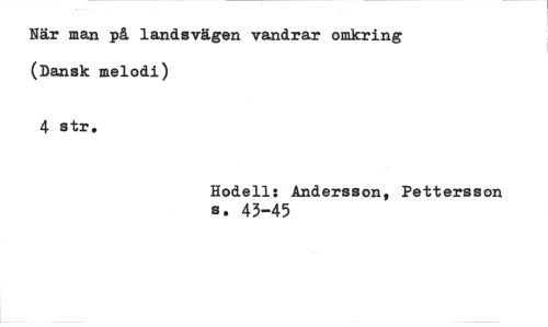 //// När man på landsvägen vandrar omkring (Dansk melodi) //// 4 str„ //// Hodell: Andersson, Pettersson 5. 43-45 ////