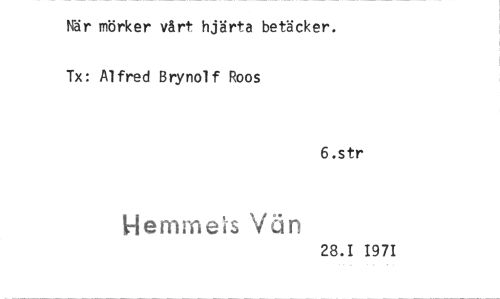 //// När mörker vårt hjärta betäcker. Tx: Alfred Brynolf Roos //// 6.str //// 1-lemine s Vän //// 28.1 1971 ////