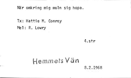 //// När omkring mig moln sig hopa. //// Tx: Hattie M. Conrey Mel: R. Lowry //// 4.str //// Hernrnets Vän //// 8.2.1968 ////