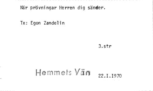 //// När prövningar Herren dig sänder. Tx: Egon Zandelin //// 3.str //// Hemmets Vål 22.1.1970 ////