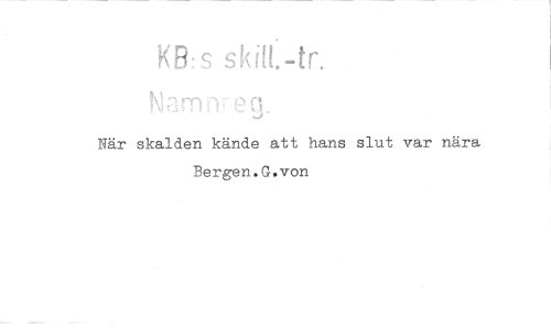//// KB:s skilt.-tr. //// När skalden kände att hans slut var nära Bergen.G.von ////