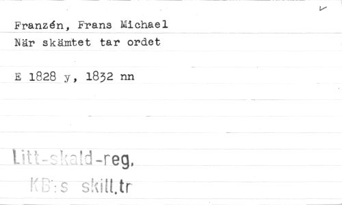 //// Franzdn, Frans Michael När skättet tar ordet //// E 1828 y, 1832 nn //// -reg, ////