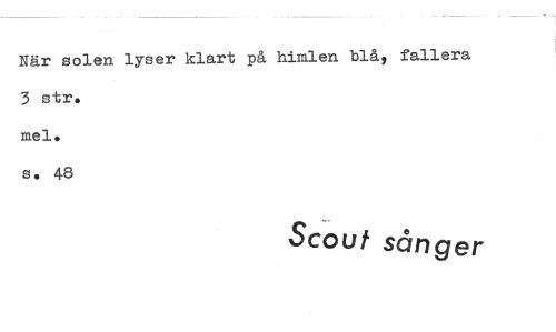 //// När solen lyser klart på himlen blå, fallera //// 3 str. mel. //// s. 48 //// Scout sånger ////