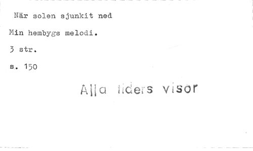 //// När solen sjunkit ned km hembygs melodi. //// 3 str. //// s. 150 //// Alla liders visor ////
