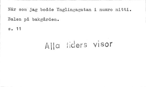 //// När som jag bodde Ynglingagatan i numro nitti. Balen på bakgården. //// s. 11 //// Alla liders visor ////