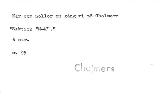 //// När som nollor en gång vi på Chalmers //// nektion "M-M"." 6 str. //// 8. 95 //// Chctmers ////