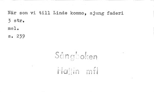 //// När som vi till Linde kommo, sjung faderi //// 3 str. mel. //// s. 239 //// Sc: //// ; ' r..' //// ticLJn ////