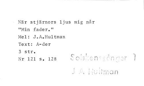 //// När stjärnors ljus mig når "Min fader." //// Mel: J.A.Hultman //// Text: A-der //// 3 str. //// Nr 121 s. 128 //// '4 n ////