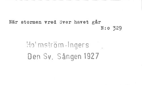 //// När stormen vred. iver havet går //// N: o 329 //// Hrnströrnngers //// Den Sv, Sången 1927 ////