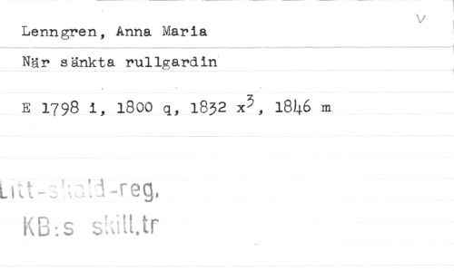 //// Lenngren, Anna Maria När sänkta rullgardin //// E 1798 i, 1800 q, 1832 x7, 1846 m //// KB:s ////