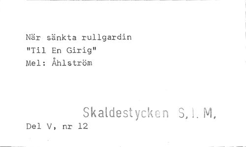 //// När sänkta rullgardin "Til En Girig" //// Mel: Åhlström //// Skaldestycken S, 1. M, //// Del V, nr 12 ////