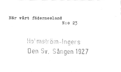 //// När vårt fädernesland //// N: o 23 //// Hokaström-Ingers //// Oen Sv, Sången 1927 ////
