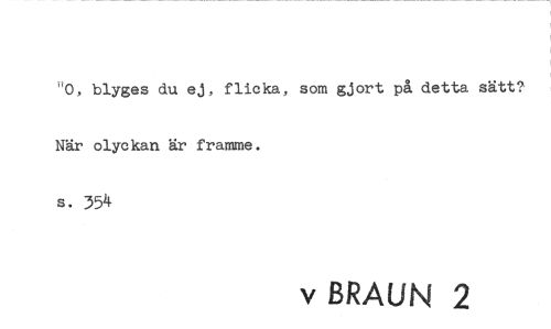 //// "0, blyges du ej, flicka, som gjort på detta sätt? När olyckan är framme. //// s. 354 //// v BRAUN 2 ////