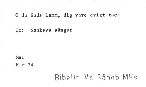 //// 0 du Guds Lamm, dig vare evigt tack Tx: Sankeys sånger //// Mel //// N:r 34 //// Bibelgir Sång!) Mus ////