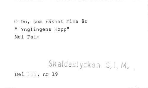 //// 0 Du, som räknat mina år " Ynglingens Hopp" //// Mel Palm //// Skaldestyck n S, 1. NI, //// Del III, nr 19 ////
