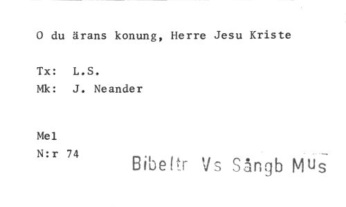 //// 0 du ärans konung, Herre Jesu Kriste //// Tx: L.S. //// Mk: J. Neander //// Mel //// N:r 74 Bibel r Vs Sångb Mus ////