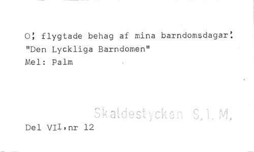 //// 0; flygtade behag af mina barndomsdagar: "Den Lyckliga Barndomen" //// Mel: Palm //// Del VIT,nr 12 ////
