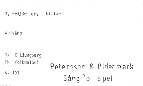 //// 0, fröjden er, I himlar //// Jul sång //// Tx G Ljungberg //// Mk folkmelodi Peterson g Older nark //// S. 191 Sång 'o s pet ////