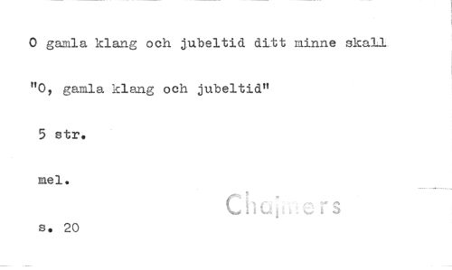 //// 0 gamla klang och jubeltid ditt minne skall "0, gamla klang och jubeltid" //// 5 str. //// mel. //// s. 20 ////