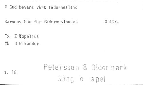 //// 0 Gud bevara vårt fädernesland //// Barnens bön för fäderneslandet 3 str. //// Tx Z Wopelius Mk D Wikander //// s. 18 Petersson g W.cier.-nark //// ..):iag spel • ////