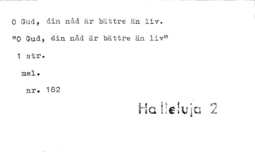 //// 0 Gud, din nåd är bättre än liv. "0 Gud, din nåd är bättre än liv" 1 str. //// mel. //// nr. 182 ////