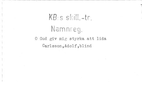 //// KB:s skiEE.-tr. //// Namnreg. //// 0 Gud giv mig styrka att lida Carlsson,Adolf,blind ////