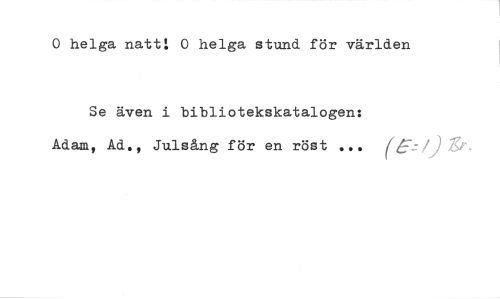 //// 0 helga natt: 0 helga stund för världen //// Se även i bibliotekskatalogen: Adam, Ad., Julsång för en röst ////
