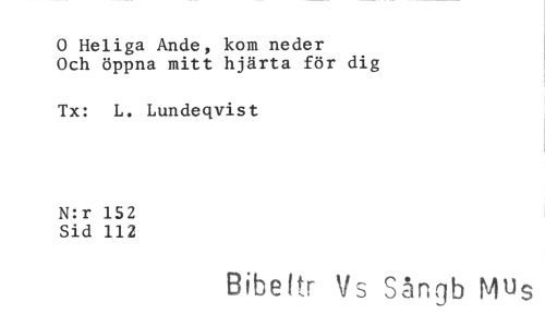 //// 0 Heliga Ande, kom neder //// Och öppna mitt hjärta för dig //// Tx: L. Lundeqvist //// N:r 152 //// Sid 112 //// Bibel r Vs Sångb Mus ////