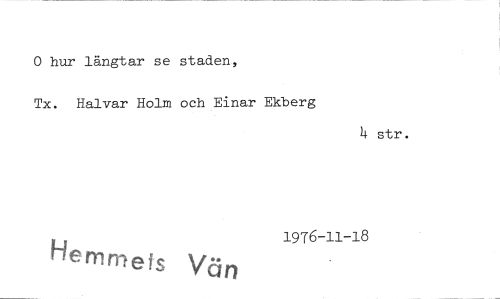 //// 0 hur längtar se staden, //// Tx. Halvar Holm och Einar Ekberg //// He nirn e k a.. n 1976-11-18 //// str. ////