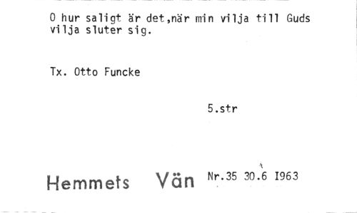 //// 0 hur saligt är det,när min vilja till Guds vilja sluter sig. //// Tx. Otto Funcke //// 5.str //// Hemmets )nirl Nr.35 30.6 1963 ////