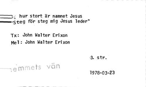 //// hur stort är namnet Jesus //// 'steg för steg mig Jesus leder" //// Tx: John Walter Erixon Mei: John Walter Erixon //// 3. str. //// e'nirnets van 1978-03-23 ////