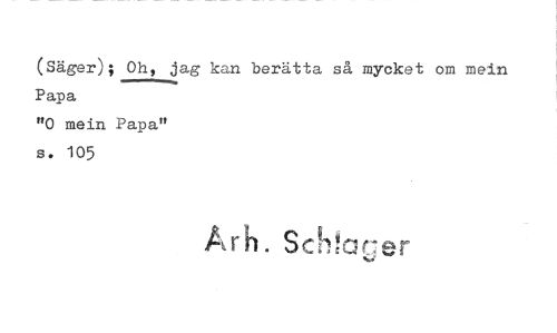 //// (Säger); Oh, jag kan berätta så mycket om mein Papa //// "0 mein Papa" //// s. 105 //// Sc-er ////