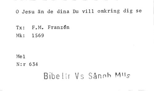 //// 0 Jesu än de dina Du vill omkring dig se //// Tx: F.M. Franzén Mk: 1569 //// Mel //// N:r 634 //// Bibe 4ir Vs Sånnh ////