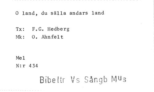 //// 0 land, du sälla andars land //// Tx: F.G. Hedberg Mk: 0. Ahnfelt //// Mel //// N:r 434 //// Bibeltr Vs Sångb Mus ////