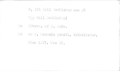 //// 0, ]At till Bethiehem o-, gå //// U7p till eleLt //// •2x öfvers. af 2. hnös, //// hk ur 2. Lommels geistl. Volkslieder. non 1367. r:o 47. ////