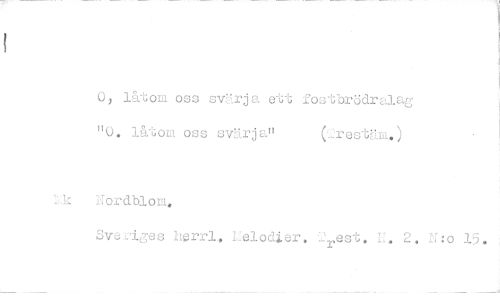 //// 0, låtom oss svärja ett fostbrödralag //// "(3. låtom oss svärja!! (2restm.) //// Nordblom. //// Sveriges herrl, Eelodler. .rest. L. 2. Ho 15. ////